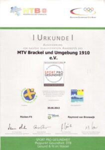 Mit Unterstützung durch das Qualitätssiegel „Sport pro Gesundheit“ vom DSB /DTB.