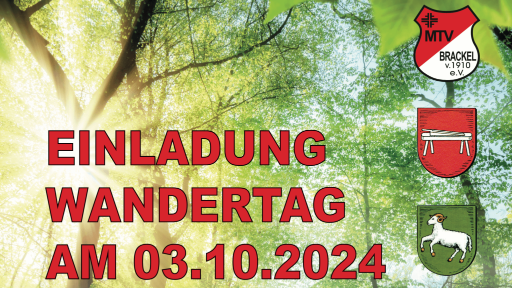 Die Gemeinde Brackel, der MTV Brackel und die Bürgerinitiative „X-durch-Y“ laden herzlich zum Wandertag am 03.10.2024 um 13.00 Uhr ein.